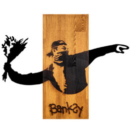 ΔΙΑΚΟΣΜΗΤΙΚΟ ΤΟΙΧΟΥ BANKSY HM4757-ΦΥΛΛΑ ΜΕΤΑΛΛΟΥ ΜΑΥΡΑ-ΞΥΛΟ 69×3(βάθος)x58Υεκ.