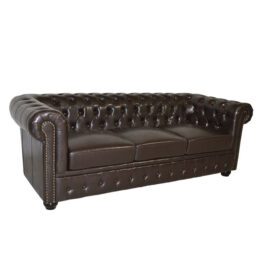 ΚΑΝΑΠΕΣ 3ΘΕΣΙΟΣ T.CHESTERFIELD HM3009.01 ΤΕΧΝΟΔΕΡΜΑ ΣΚΟΥΡΟ ΚΑΦΕ 208x90x73Υ εκ.