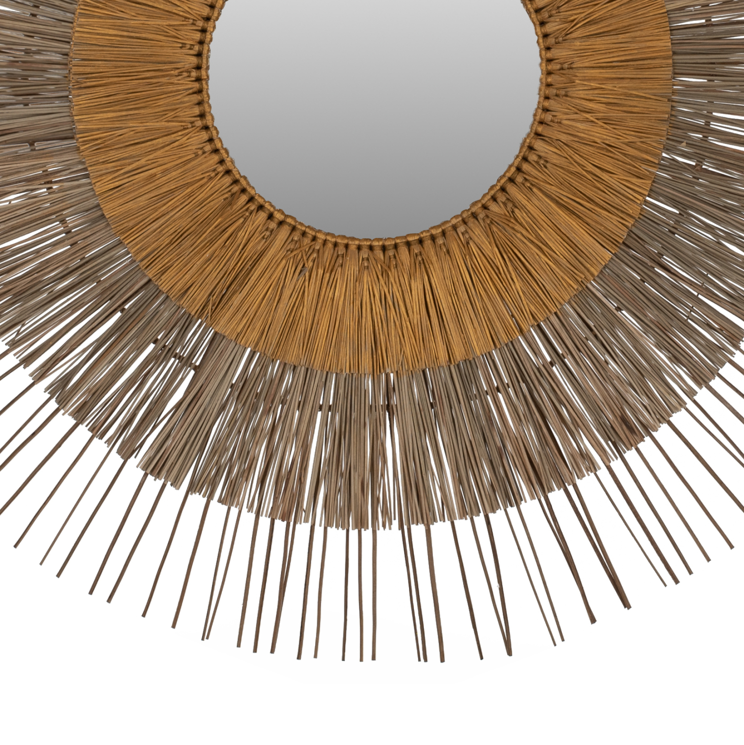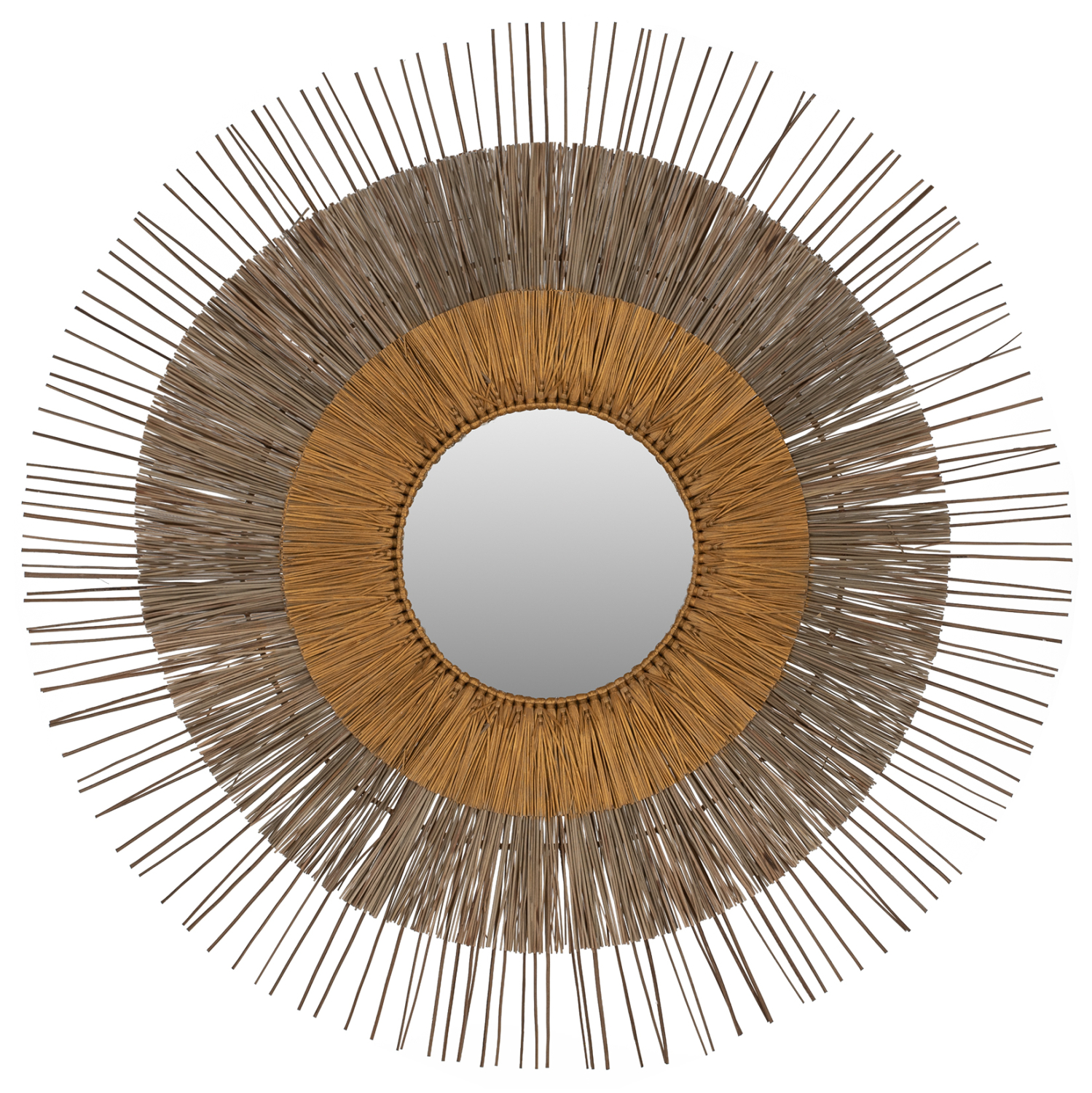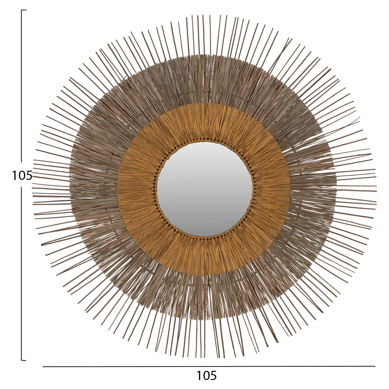 O καθρέπτης ΗΜ7798, είναι πραγματικά ένα εντυπωσιακό κομμάτι στην διακόσμηση του χώρου σας! Το design του είναι όμορφο με πλαίσιο από το χόρτο Mendong, το οποίο στο κέντρο του «φιλοξενεί» τον καθρέπτη, ενώ είναι σε φυσικό με χρυσό χρώμα. Το χαρακτηριστικό είναι ότι ο καθρέφτης είναι μικρός και αποτελεί κυρίως διακοσμητικό στοιχείο.