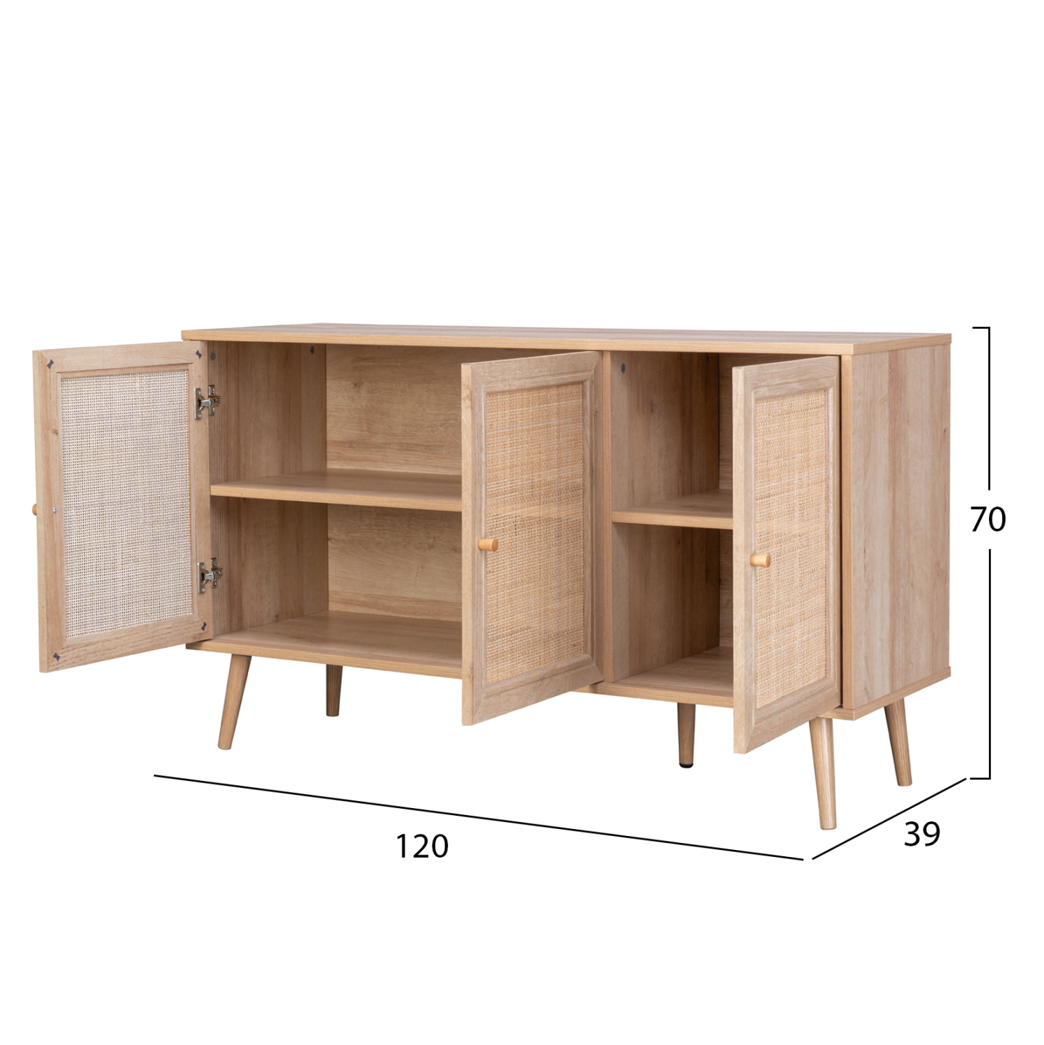Ο μπουφές μελαμίνης COLM είναι ένα πρακτικό έπιπλο όπου κι αν τον τοποθετήσετε. Έχει ψηλά ξύλινα πόδια, ενώ διαθέτει 3 πόρτες με διάτρητο σχέδιο από συνθετικό Rattan και καλαίσθητα χερουλάκια. Και οι δύο πλευρές του μπουφέ έχουν ράφι στο εσωτερικό και το χρώμα όλης της κατασκευής είναι το φυσικό του ξύλου. Τι είναι όμως ο μπουφές;