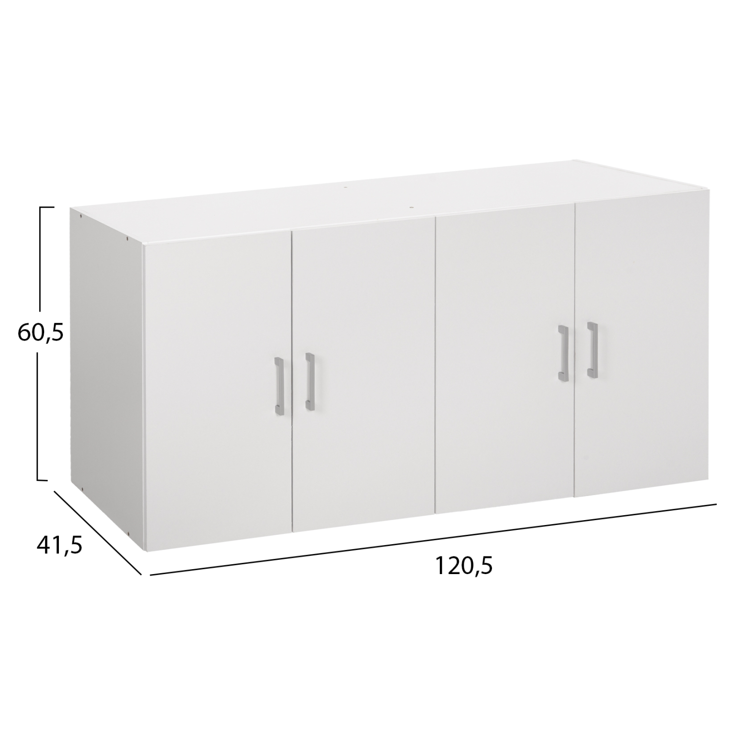 ΗΜ352.05—-Το FERNANDA είναι ένα πατάρι για 4-φυλλη ντουλάπα. Πρόκειται για ένα πρακτικότατο συμπλήρωμα που έχει φτιαχτεί με γνώμονα την όσο το δυνατόν καλύτερη εκμετάλλευση του χώρου. Οι διαστάσεις είναι ικανοποιητικές και είναι χωρισμένο σε δύο διαμερίσματα. Και οι 4 πόρτες έχουν κάθετα μεταλλικά χερούλια, ενώ το εσωτερικό των διαμερισμάτων είναι κενό. Δεν διαθέτουν ράφια ή κάτι άλλο και ενδείκνυνται για αποθήκευση ογκωδών αντικειμένων. Το πατάρι είναι κατασκευασμένο από μελαμίνη σε ΛΕΥΚΟ χρώμα και εσείς πρέπει απλά να το ταιριάξετε με την υπάρχουσα ντουλάπα σας, τόσο χρωματικά, όσο και από πλευράς διαστάσεων.