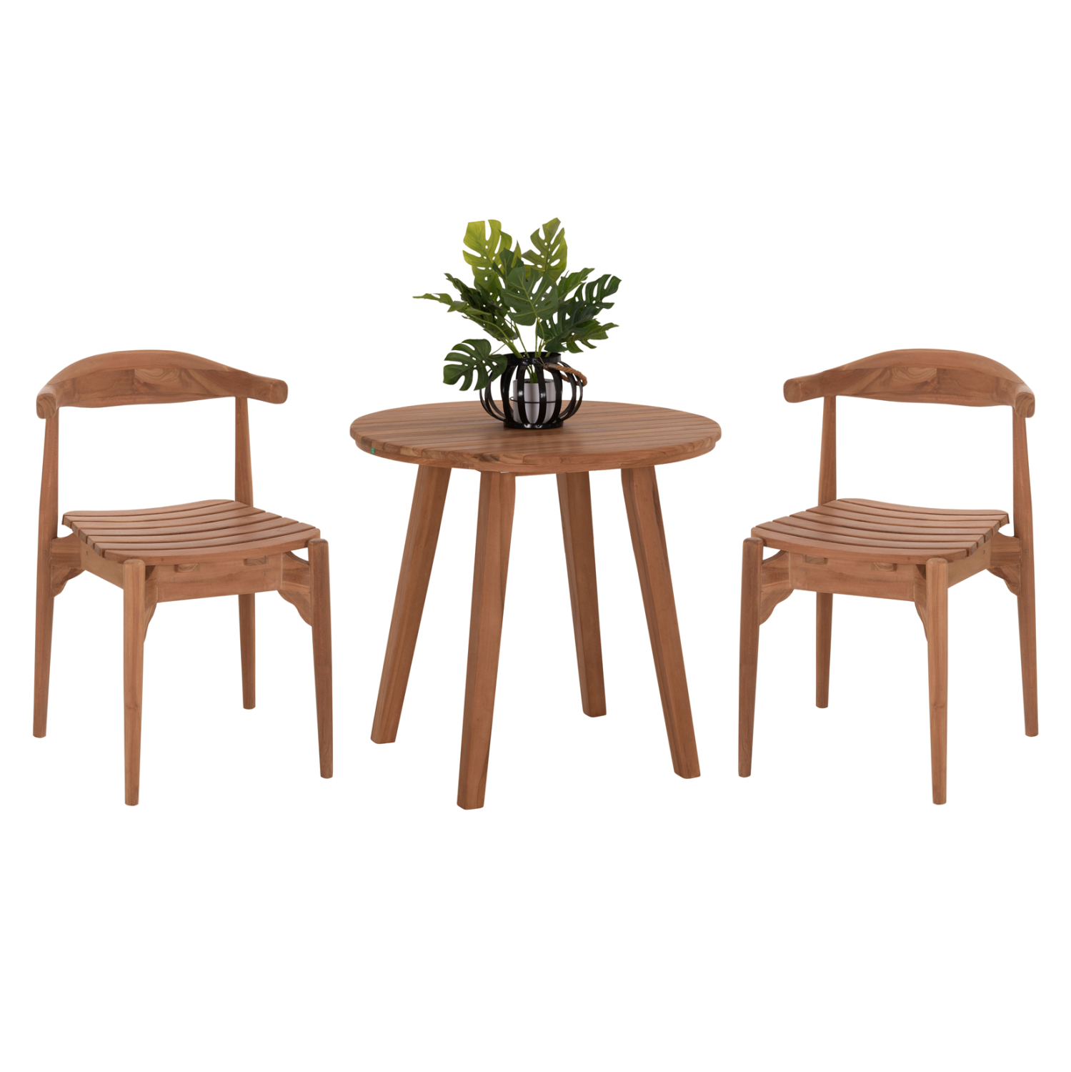 Αυτό το Σετ τραπεζαρίας εξωτερικού χώρου διαθέτει στρογγυλό τραπέζι και 2 καρέκλες, όλα κατασκευασμένα από ξύλο TEAK σε ΦΥΣΙΚΟ χρώμα.