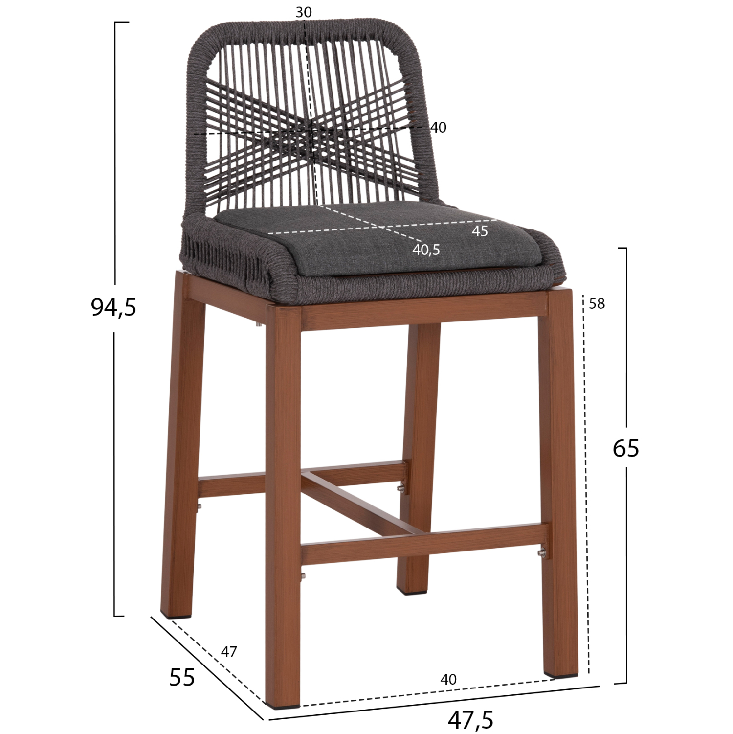 Το σκαμπό μπαρ μεσαίου ύψους HOWARD για επαγγελματική χρήση, είναι αυτό ακριβώς που θέλετε! Μοντέρνο, άνετο και σταθερό! Η διχρωμία του ΚΑΦΕ σκελετού, με το ΣΚΟΥΡΟ ΓΚΡΙ κάθισμα και την επένδυση από ποιοτικό σχοινί στην πλάτη είναι μοναδική. Η πλάτη είναι πρακτική ενώ το κάθισμα είναι ουσιαστικά μια βάση στην οποία τοποθετείται το μαξιλάρι.